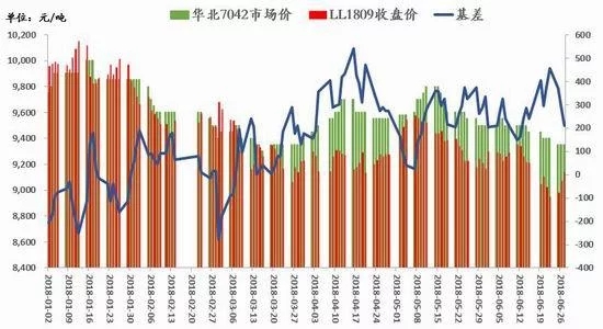 如圖所示3所顯示。3月份至今,線形期貨交易下挫較現貨交易領跑,呈不斷升貼水狀。受進口高盈利的刺激性,很多聚乙烯到港。一部分石油化工公司試著挺價,但因庫存消化吸收遲緩、終端設備需求平平淡淡,LLDPE期貨價格走低。二季度,石油化工維修增加,LLDPE動工一度降至底點。線形因而出現反跳,遠期合約下降。