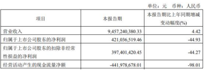 報(bào)告期內(nèi)經(jīng)營活動(dòng)產(chǎn)生的現(xiàn)金流量凈額為-4.41億元,截至本報(bào)告期末總資產(chǎn)521.4億元。