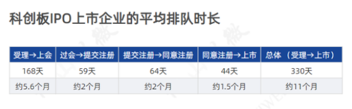 據(jù)統(tǒng)計(jì),2021年科創(chuàng)板新增上市公司162家。這162家科創(chuàng)板IPO從受理到上市平均排隊(duì)時(shí)長需要330天(約11個(gè)月)。其中,從受理到上會(huì)約5.6個(gè)月,過會(huì)到提交注冊(cè)約2個(gè)月,提交注冊(cè)到同意注冊(cè)約2個(gè)月,同意注冊(cè)到上市約1.5個(gè)月。按此推算,海正生物大約于一個(gè)半月后即6月底上市。