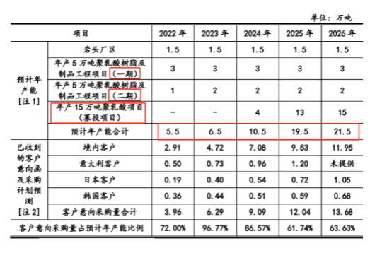 年產(chǎn)15萬噸聚乳酸項(xiàng)目(募投項(xiàng)目)預(yù)計(jì)2024年6月投產(chǎn),考慮產(chǎn)能爬坡, 預(yù)計(jì)2024-2026年實(shí)際產(chǎn)能分別為4萬噸、13萬噸和15萬噸。