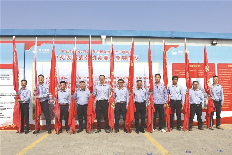 乙烯項目中交攻堅勞動競賽授旗儀式現(xiàn)場。 (王揚 攝)