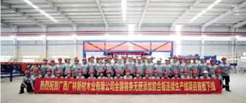 6月8日,廣西林業(yè)集團(tuán)下屬子公司崇左廣林迪芬新材料科技有限公司年產(chǎn)21萬(wàn)m³全自動(dòng)連續(xù)平壓無(wú)醛(MDI)膠合板和LVL生產(chǎn)線(xiàn)首板順利下線(xiàn),將引領(lǐng)膠合板產(chǎn)業(yè)轉(zhuǎn)型升級(jí)。生產(chǎn)線(xiàn)定徑段采用萬(wàn)華化工開(kāi)發(fā)的單組分無(wú)甲醛噴涂膠合板技術(shù)和設(shè)備,開(kāi)啟了無(wú)甲醛膠合板自動(dòng)化生產(chǎn)的新篇章!