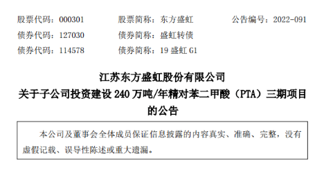 6月27日晚,東方盛虹宣布,為進(jìn)一步鞏固精對(duì)苯二甲酸(PTA)的產(chǎn)能和規(guī)模優(yōu)勢(shì),提升整個(gè)產(chǎn)業(yè)鏈的綜合競(jìng)爭(zhēng)力,公司二級(jí)全資子公司江蘇洪港石化有限公司(虹港石化)將投資建設(shè)240萬(wàn)...