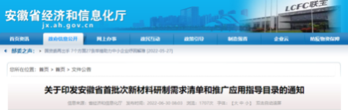 6月30日,安徽省經濟和信息化廳下發關于印發安徽省第一批新材料開發要求清單和推廣應用指導目錄的通知。發布了《安徽省第一批新材料開發需求清單(2022年版)》和《安徽省第一批...