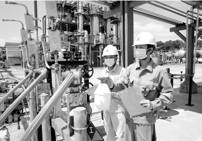 7月14日,操作人員對高純加氫站設備進行安全檢查