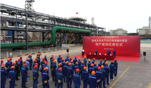 8月6日,滄州大化20萬噸/年雙酚A項目成功投產。