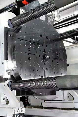 將獲得展現(xiàn)的MacroPower 1300/5100H/750L COMBIMOULD注塑機,其上的一個趣味關鍵點是直徑2000Mm的伺服電機電輪盤。