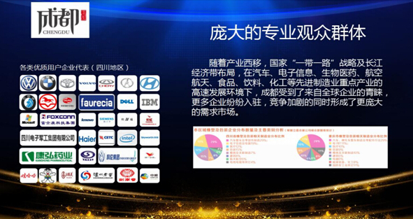 CDPE舉辦方秉持推動領域的參加展會核心理念,憑著舉辦方很多年的參加展會工作經驗,借助成渝強勁的客戶產業鏈,協同成都立嘉家具展覽有限責任公司傾情打造出中國西部地區橡塑及包裝第一展,融合西部地區近現代工業生產的發展趨向,將世界各國前沿的新技術應用、新機器設備、新技術新工藝帶至成都,讓西南區的客戶能零距離領略到現如今橡塑及包裝領域最前端技術的風采。