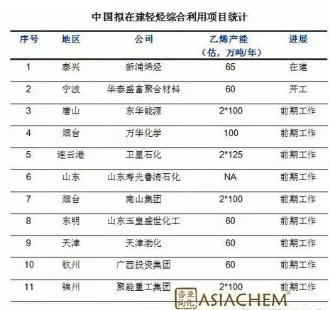 20182月10日,陽煤集團青島市恒源化工廠有限責任公司與美國乙烷企業簽定乙烷供貨協議書,陽煤集團在青島市董家口整體規劃基本建設二百萬噸/年乙烷開發利用項目。董家口如皋港化工新材料產業園區目前40萬噸級/年PVC、50萬噸級/年苯乙烯生產制造設備、新建40萬噸級/年VCM項目等,年可耗費乙烯50多萬噸。該項目年產量乙烯150萬噸級,除供產業園區PVC、苯乙烯等中下游客戶外,配套設施基本建設FDPE、CPE專用型料聚乙烯、極高相對分子質量聚乙烯等聚烯烴新型材料。
