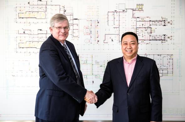 英威達優秀技術業務總裁Mike Pickens(左)和桐昆集團許總裁在慶賀典禮揮手。