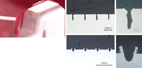 如前所述,研究發(fā)現(xiàn),應(yīng)用不一樣(結(jié)構(gòu)化)的激光器能夠 完成不一樣的凹槽幾何圖形樣子。凹槽樣子的不規(guī)律性和突顯原材料表面的重?zé)拰拥囊?guī)格(和樣子)有利于將塑料導(dǎo)向在連接頭中。