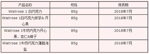 已有人閱讀此文 - -據英國食品標準局(FSA)信息,9月27日英國食品標準局公布召回通告稱,Waitrose商場公布召回4款朱古力條,由于這種產品很有可能帶有塑料殘片。