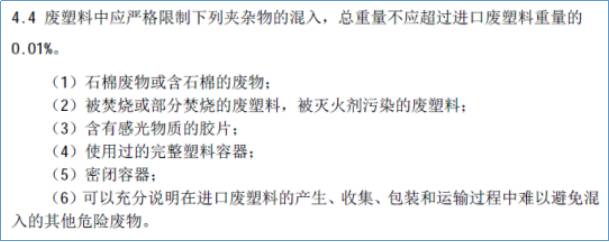 調節了危廢的操縱規定,由以前的嚴禁帶有危廢進口,到限定危廢的成分不超過進口廢舊塑料的0.01%。