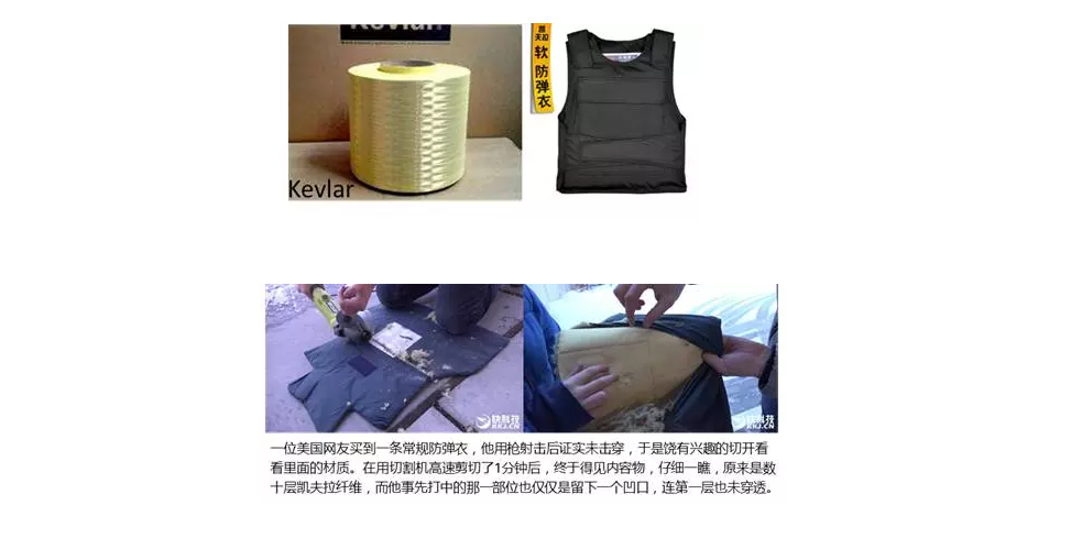七十年代初,一種具備極高抗壓強度、超高韌性、耐熱的生成纖維――凱夫拉(Kevlar)由美國杜邦(DuPont)企業(yè)研制,并迅速在防彈行業(yè)獲得了運用。