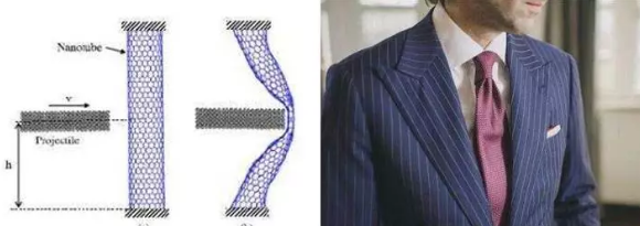 防彈實際效果上主要是反映在彈性模具上,換句話說納米碳管纖維盔具或防彈衣比凱夫拉的抵御抗壓強度起碼高2.4倍。