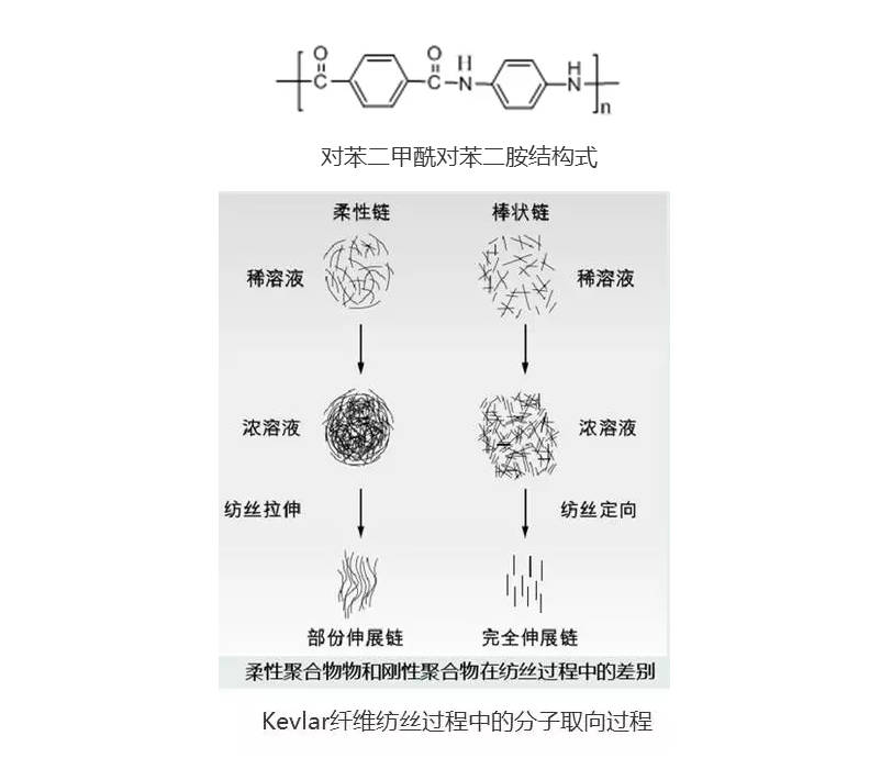 “Kevlar”(凱夫拉)是商標(biāo)名字,具體材料為聚對苯二甲酰對苯二胺,它是歸屬于一種液體晶形桿狀分子結(jié)構(gòu)。這類液體晶形桿狀分子式,能夠 在濃溶液中產(chǎn)生高寬比井然有序的相疇,在紡紗定項拉申時,相疇順著裁切方位產(chǎn)生基本上極致的分子結(jié)構(gòu)趨向,而授予凱夫拉纖維非常高的抗壓強度和應(yīng)變速率。