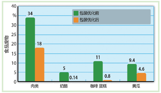 圖1 相較食材生產量來講,提升的包裝可明顯降低被丟掉的食材總數(來源于:denkstatt 2015)
